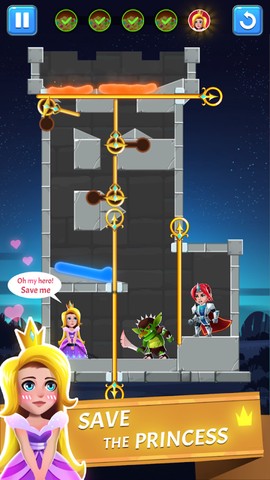 救救公主是一款以拉针解谜机制为核心的益智冒险游戏,玩家在游戏中扮演救援角色,通过精确操作解救被困公主并消灭城堡内的怪物。游戏强调策略规划与观察能力,拉针顺序直接影响通关成功率,因此需在行动前细致分析环境。魔幻城堡场景为玩家提供了丰富的沉浸式体验。